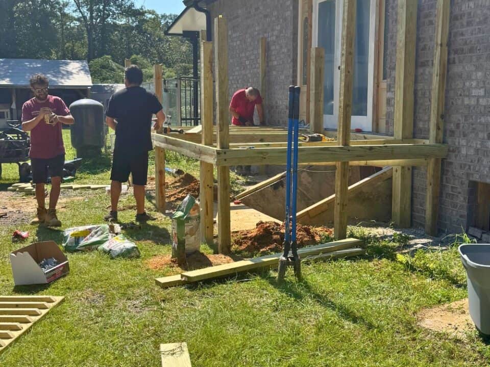 ) and then this evening we finished putting up all of the pickets to make sure the puppies are securely corralled inside. We let them out and they went completely bananas running from one side of the yard to the other – so happy to not be on a leash anymore.