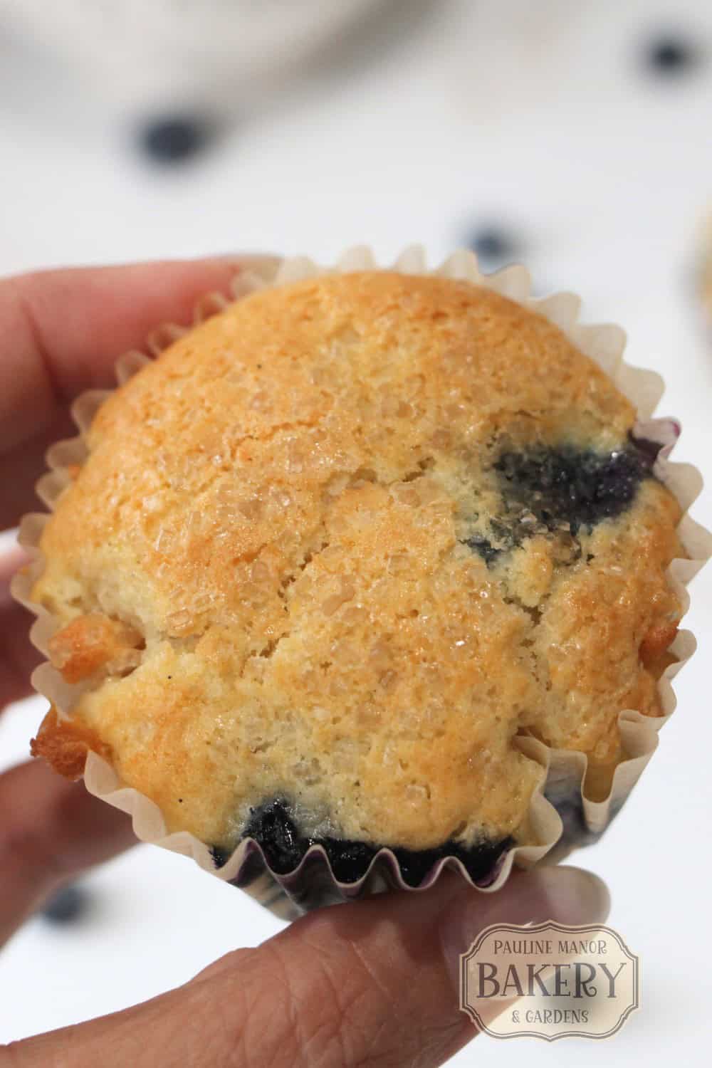 You can use either fresh or frozen blueberries in this recipe, and both options work beautifully. Fresh blueberries will hold their shape a bit better and don’t bleed into the batter, so your muffins will have a cleaner look. But frozen berries are more convenient and budget-friendly, especially when blueberries aren’t in season.