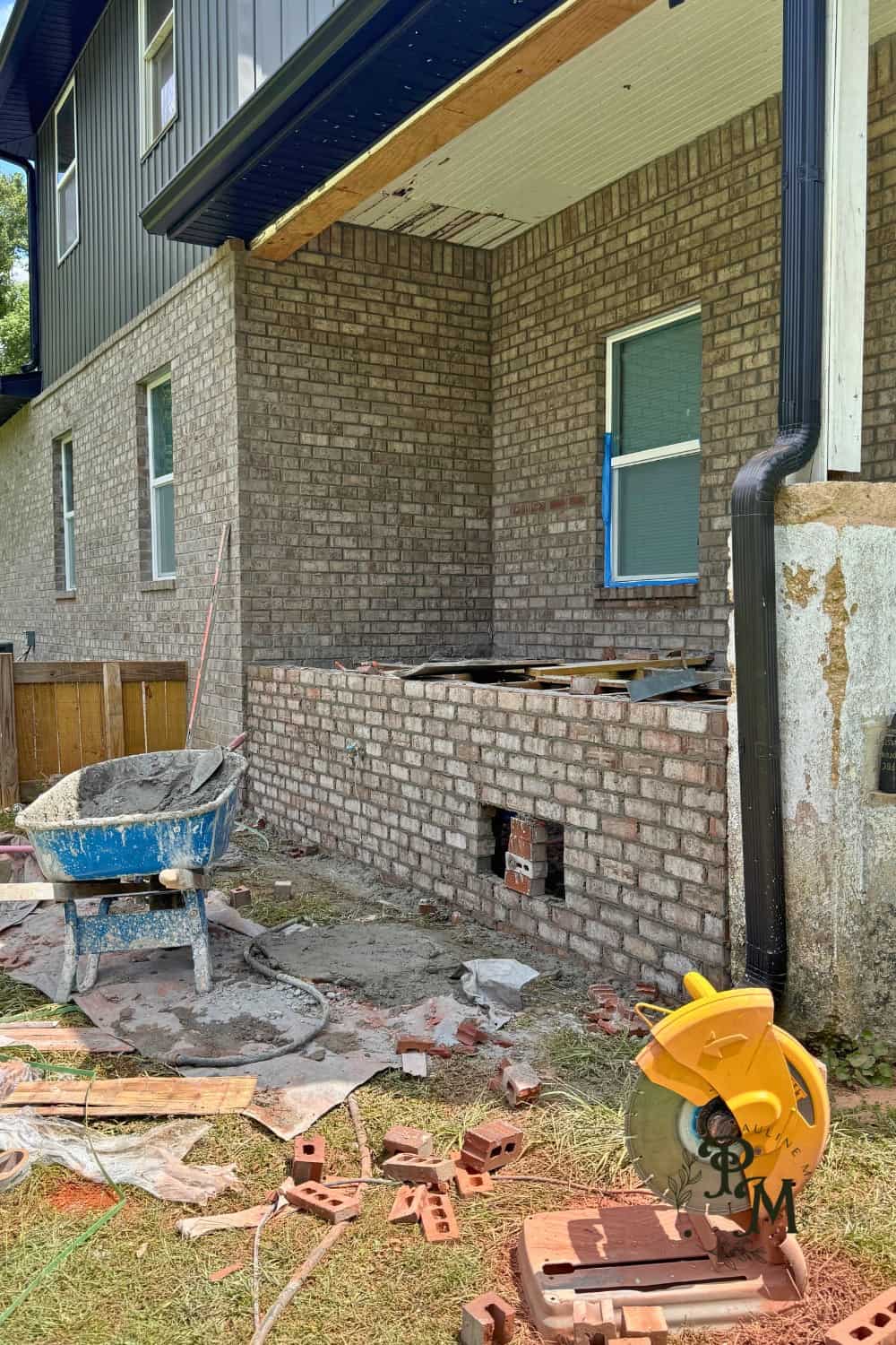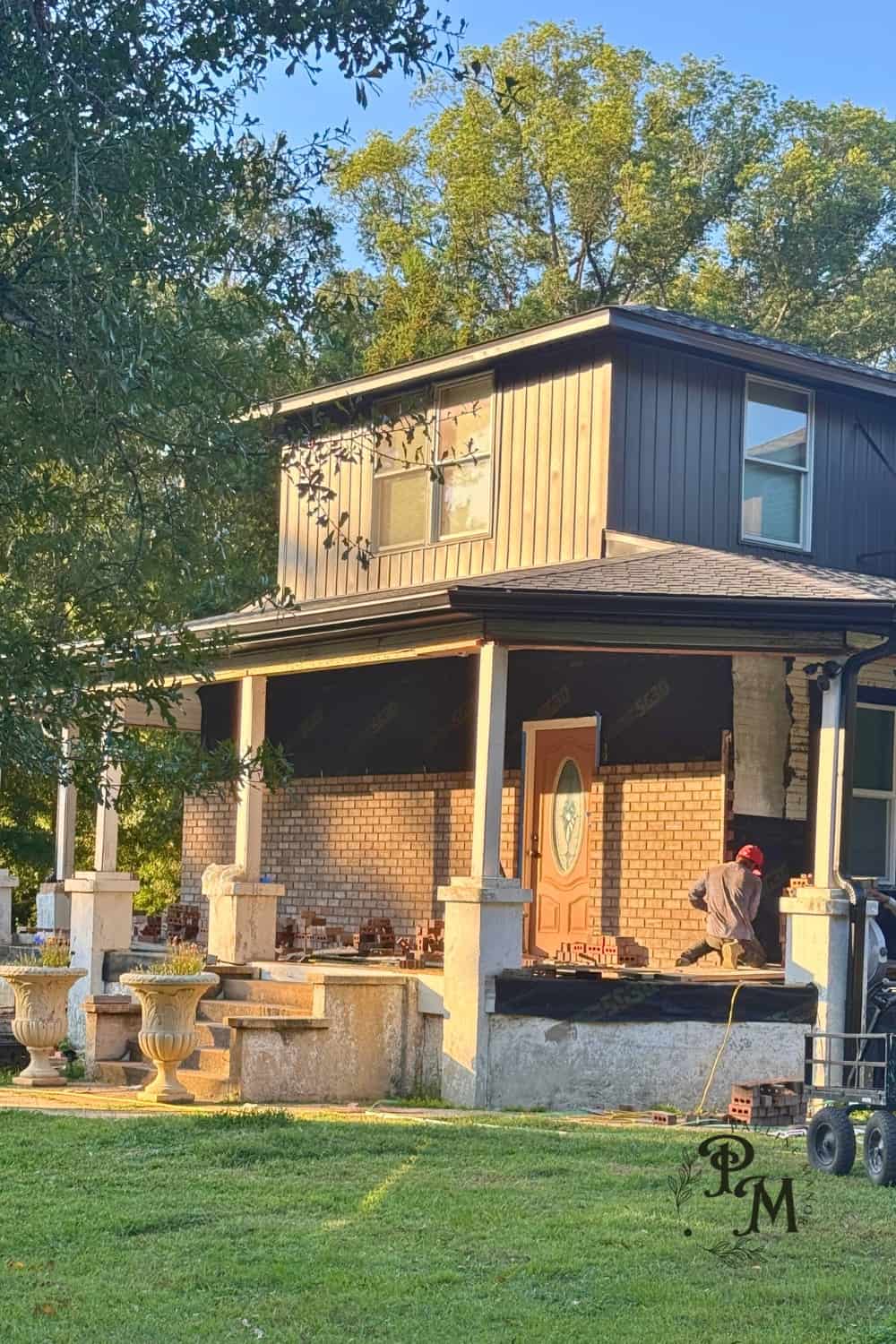 When we started this project, I planned to carry the brickwork around the front of the porch, too. In my head, it made sense, but once the crew finished the main part of the house and I stepped back to look, I realized it would have been too much.