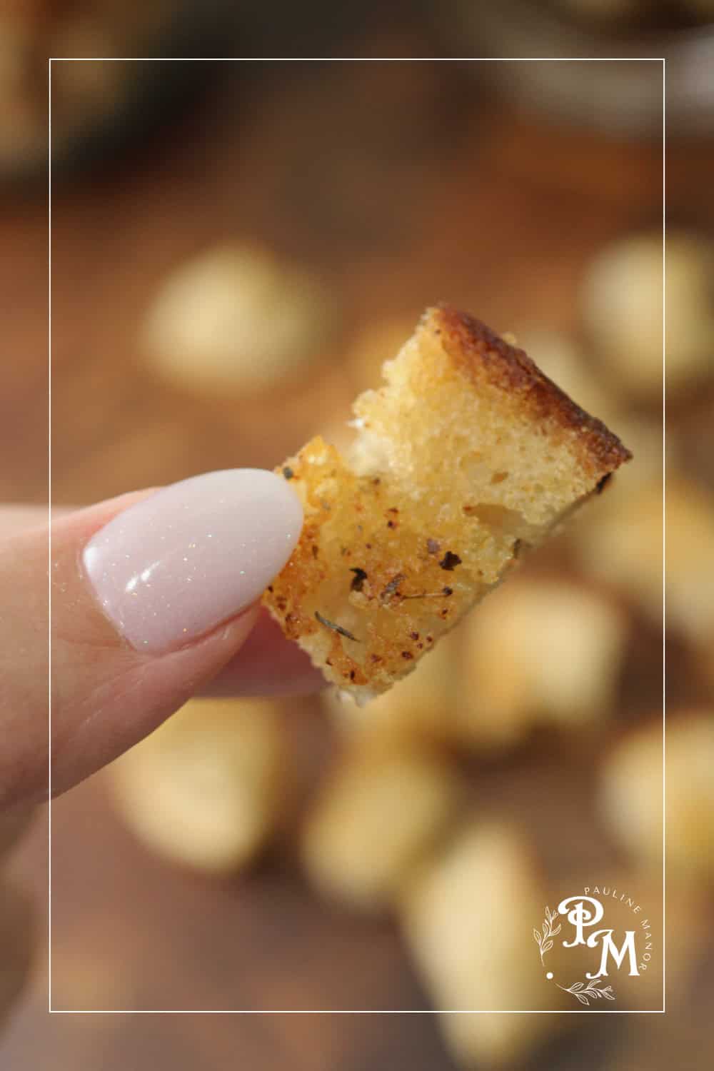 If you are using sourdough that has inclusions like cheese or fruit, you may need to increase the time you bake. You want them to be totally dried out but not overcooked.